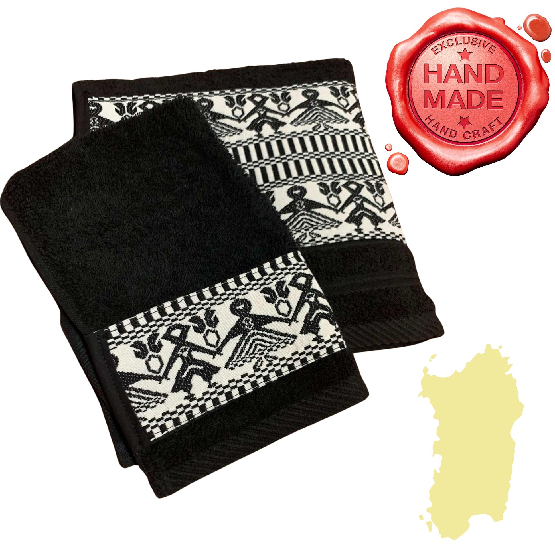 Set Asciugamani "Sardinia Elegance" – Tradizione e Lusso nella Tua Casa 🖤✨